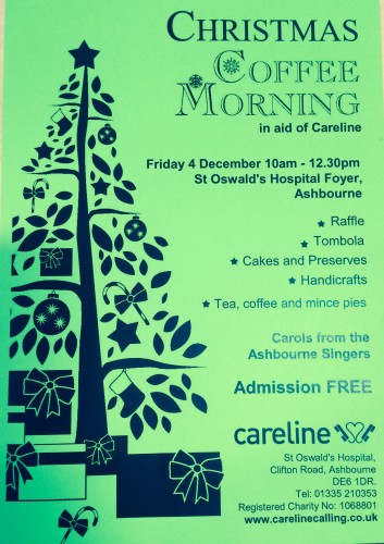 Don’t forget the Careline Christmas Coffee Morning this Friday from 10-12.30pm in the foyer of St Oswald’s Hospital. Come along and join us for a warm drink and mince pie – everyone welcome!