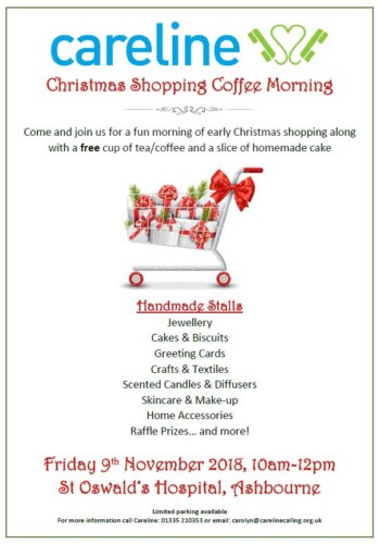 We are holding a Christmas Shopping Coffee Morning on Friday 9th November at St Oswald’s Hospital, Ashbourne, 10am-12pm. There will be the usual tea/coffee, raffle and a slice of homemade cake, but there will also be lots of local crafters and artisans selling their handmade goods, from jewellery and home accessories to candles and greeting cards. It’s open to everyone, so please do come along – we hope you can make it!