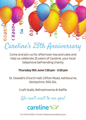 💌 Cheque: Payable to Careline, St. Oswald’s Hospital, Clifton Road, Ashbourne, Derbyshire, DE6 1DR