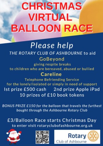 The Rotary Club of Ashbourne is kindly hosting a Christmas Virtual Balloon Race starting on Christmas Day in aid of Careline and one other charity. There are lots of amazing prizes!!